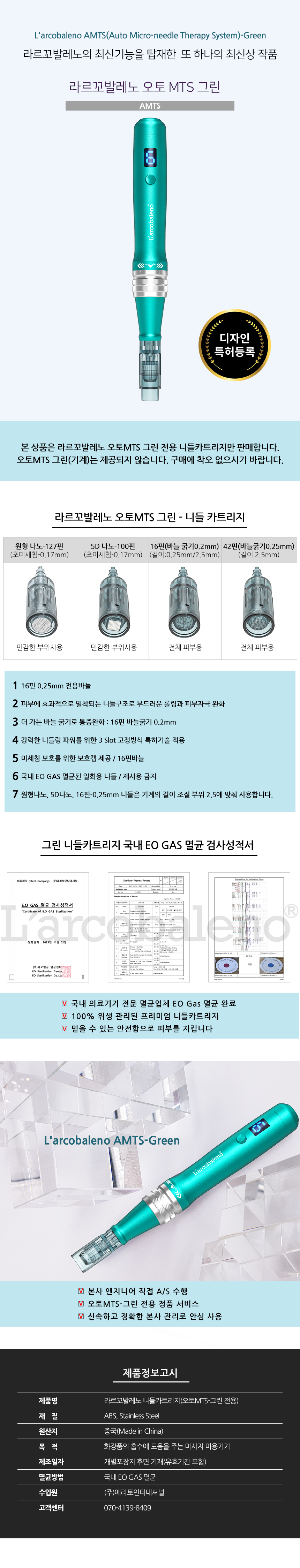 이미지 확대보기라르꼬발레노 디지털 오토 MTS 그린 전용 니들 25개